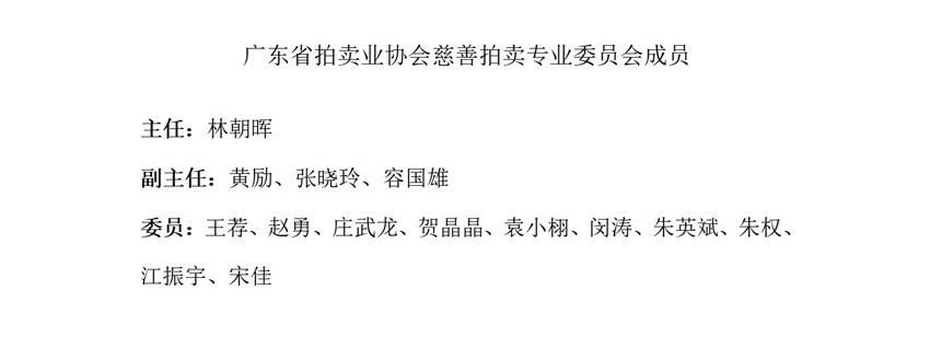 隨后,與會(huì)成員進(jìn)行了慈善拍賣的經(jīng)驗(yàn)分享,討論并通過(guò)了《廣東省拍賣業(yè)協(xié)會(huì)慈善拍賣專業(yè)委員會(huì)工作條例》和首批委員會(huì)成員名單。