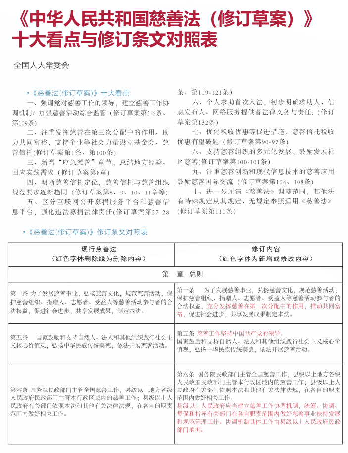 :《慈善法(修訂草案)》十大看點(diǎn)與修訂條文對照表