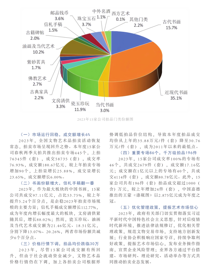 :中拍協(xié)藝委會發(fā)布2023年15家文物藝術(shù)品拍賣公司評述