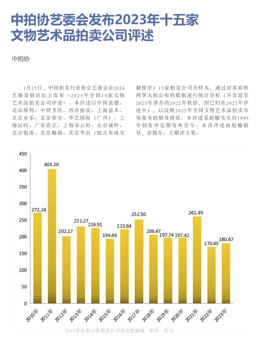中拍協(xié)藝委會發(fā)布2023年15家文物藝術(shù)品拍賣公司評述
