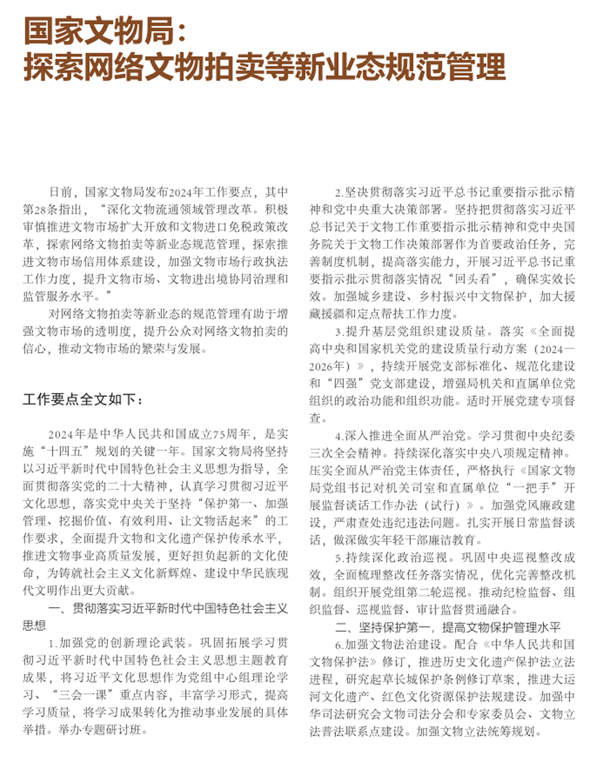 :國家文物局:探索網(wǎng)絡文物拍賣等新業(yè)態(tài)規(guī)范管理