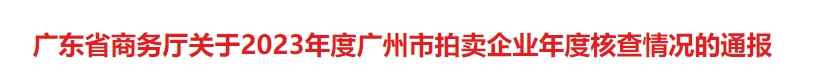 根據(jù)《廣東省人民政府關于調整實施一批省級權責清單事項的決定》(廣東省人民政府令第270號),我廳委托廣州市商務局按照《中華人民共和國拍賣法》和《拍賣管理辦法》有關規(guī)定,對廣州市2023年底前經批準取得從事拍賣業(yè)務許可、納入統(tǒng)計管理的210家企業(yè)進行年度核查。其中,135家企業(yè)按要求報送年度核查材料;75家企業(yè)未按要求報送年度核查材料?,F(xiàn)將年度核查情況及處理意見通報如下: