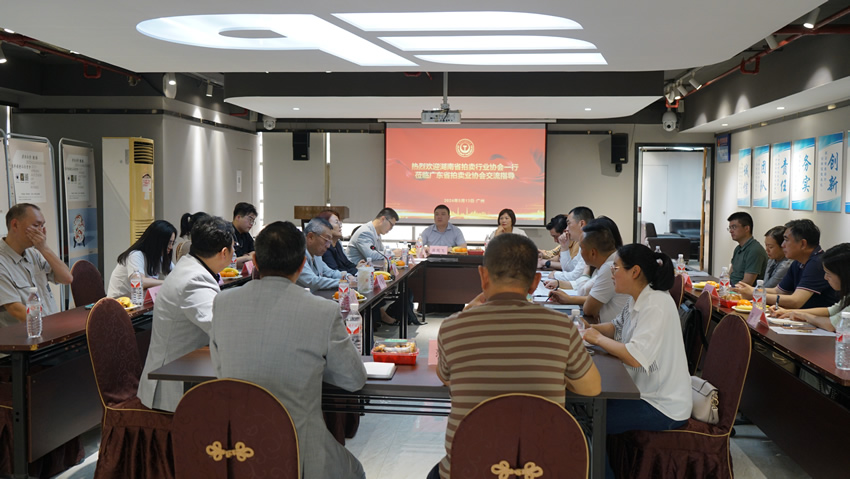 5月13日-14日,湖南省拍賣行業(yè)協(xié)會在會長盛海建,副會長兼秘書長陳小橋的帶領(lǐng)下專程來廣州與我會訪問交流。湖南省拍協(xié)副會長趙藝、陳建輝、虢利平,監(jiān)事長范吉軍,副監(jiān)事長陳紅,副秘書長何國標(biāo),常務(wù)理事何菊艷、蔣周飛、孫艷等一行17人隨團(tuán)參訪。廣東省拍賣業(yè)協(xié)會黨支部書記雷敏,會長鄭曉星,副會長張曉玲、溫國健、林朝暉、李保華,秘書長蔡健華,監(jiān)事長陳繼軍,特資委副主任楊京等熱情接待。