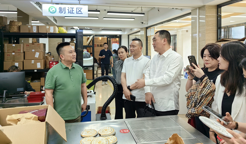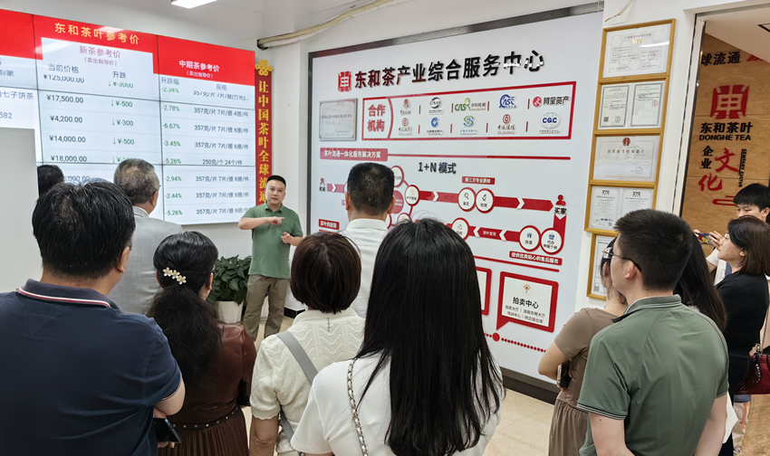 隨后,湖南省拍協(xié)一行在廣東省拍協(xié)領(lǐng)導(dǎo)陪同下前往會員企業(yè)--廣東東和茶葉有限責(zé)任公司進(jìn)行參觀學(xué)習(xí),受到公司董事長陳軍日熱情歡迎。他詳細(xì)介紹了公司的發(fā)展情況,東和公司創(chuàng)立于2008年,是一家以交易知名流通茶葉為核心業(yè)務(wù)的公司,為廣大茶友提供誠信、可靠的茶葉交易平臺,也因而極大地滿足了商家、消費(fèi)者在日常生活中對茶葉的需求,同時(shí)打造包括交易渠道、服務(wù)端、大宗商品服務(wù)、O2O體驗(yàn)店和金融服務(wù)在內(nèi)的茶葉供應(yīng)鏈,提供“1+N模式”茶葉流通一體化服務(wù)解決方案。