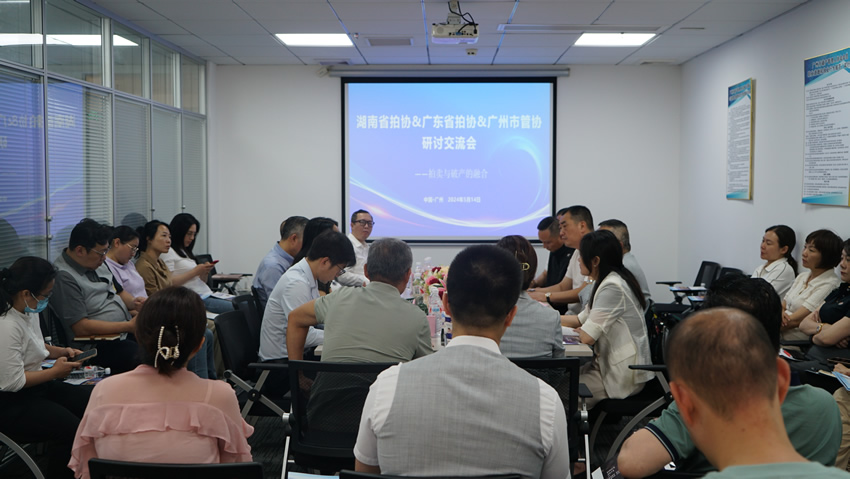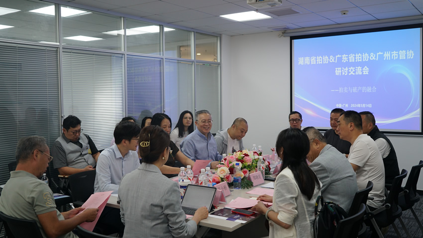 14日上午,廣東省拍協(xié)、湖南省拍協(xié)在廣州市破產(chǎn)管理人協(xié)會與該協(xié)會領(lǐng)導(dǎo)舉行了主題為“拍賣與破產(chǎn)的融合”的研討交流會。廣州市破產(chǎn)管理人協(xié)會會長錢少武,副會長鄭飛虎,秘書長梁偉榮,理事麥佳耀,行政總監(jiān)陳麗華出席會議。