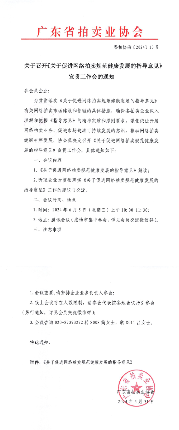 :關(guān)于召開《關(guān)于促進(jìn)網(wǎng)絡(luò)拍賣規(guī)范健康發(fā)展的指導(dǎo)意見》宣貫工作會的通知
