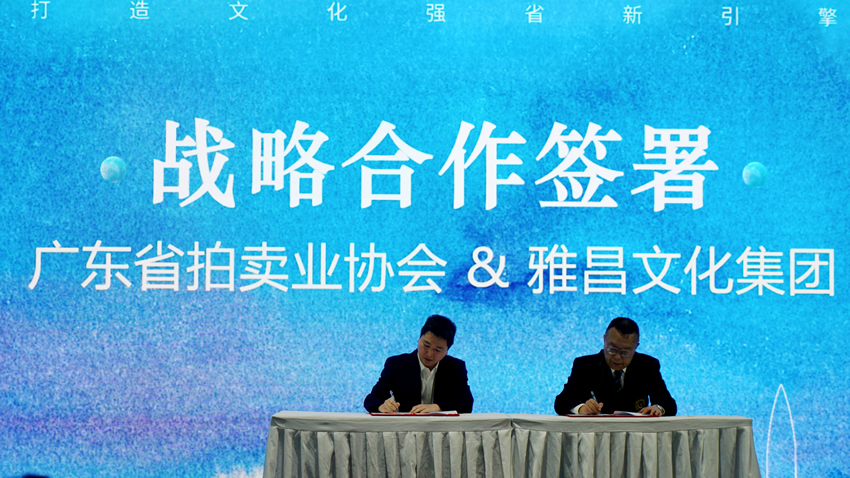 會(huì)上,廣東省拍賣業(yè)協(xié)會(huì)與雅昌文化(集團(tuán))有限公司簽訂戰(zhàn)略合作協(xié)議,就文物藝術(shù)品拍賣的行業(yè)宣傳、品牌活動(dòng)、市場研究、規(guī)范發(fā)展等方面充分發(fā)揮雙方各自的優(yōu)勢進(jìn)行合作,實(shí)現(xiàn)社會(huì)效益、行業(yè)效益和經(jīng)濟(jì)效益共贏。